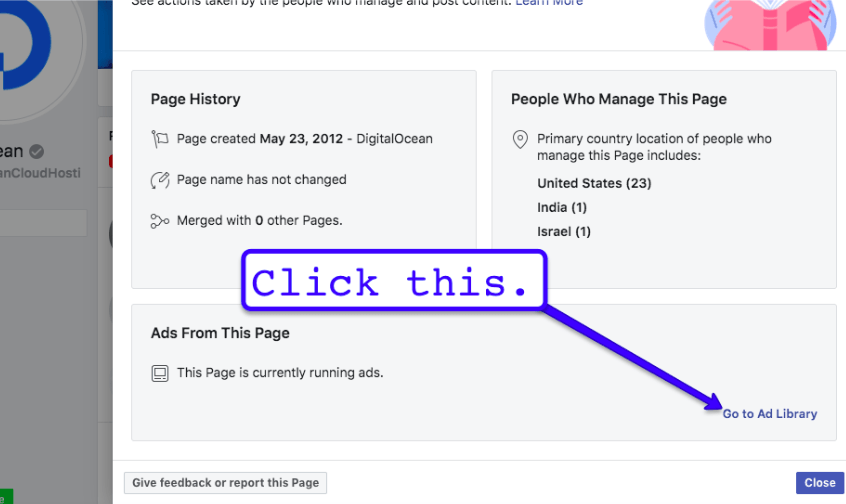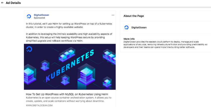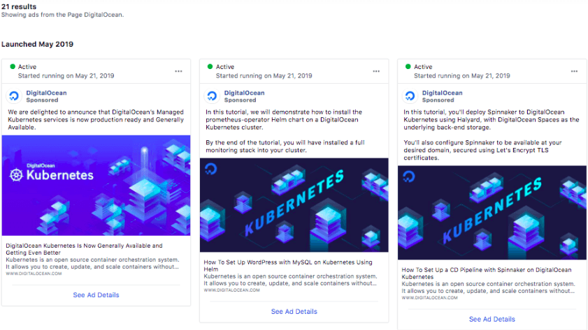 Supposing Digital Ocean is one of your competitors, and you want to see how their Facebook ads look.