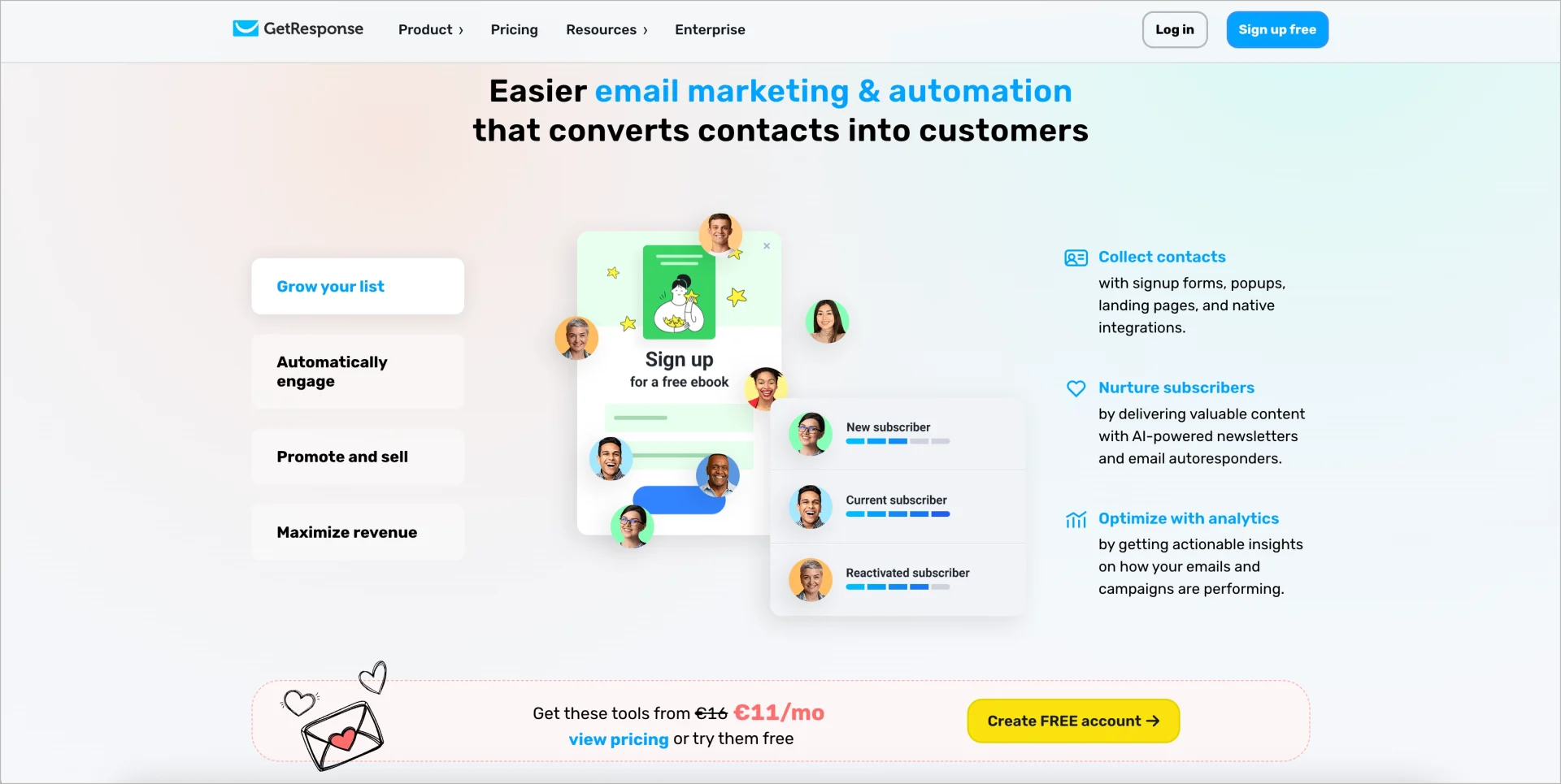 GetResponse | Intelligente Automatisierung mit Webinar-Hosting | $19/Monat (1.000 Kontakte) | Ja (bis zu 500 Kontakte) |