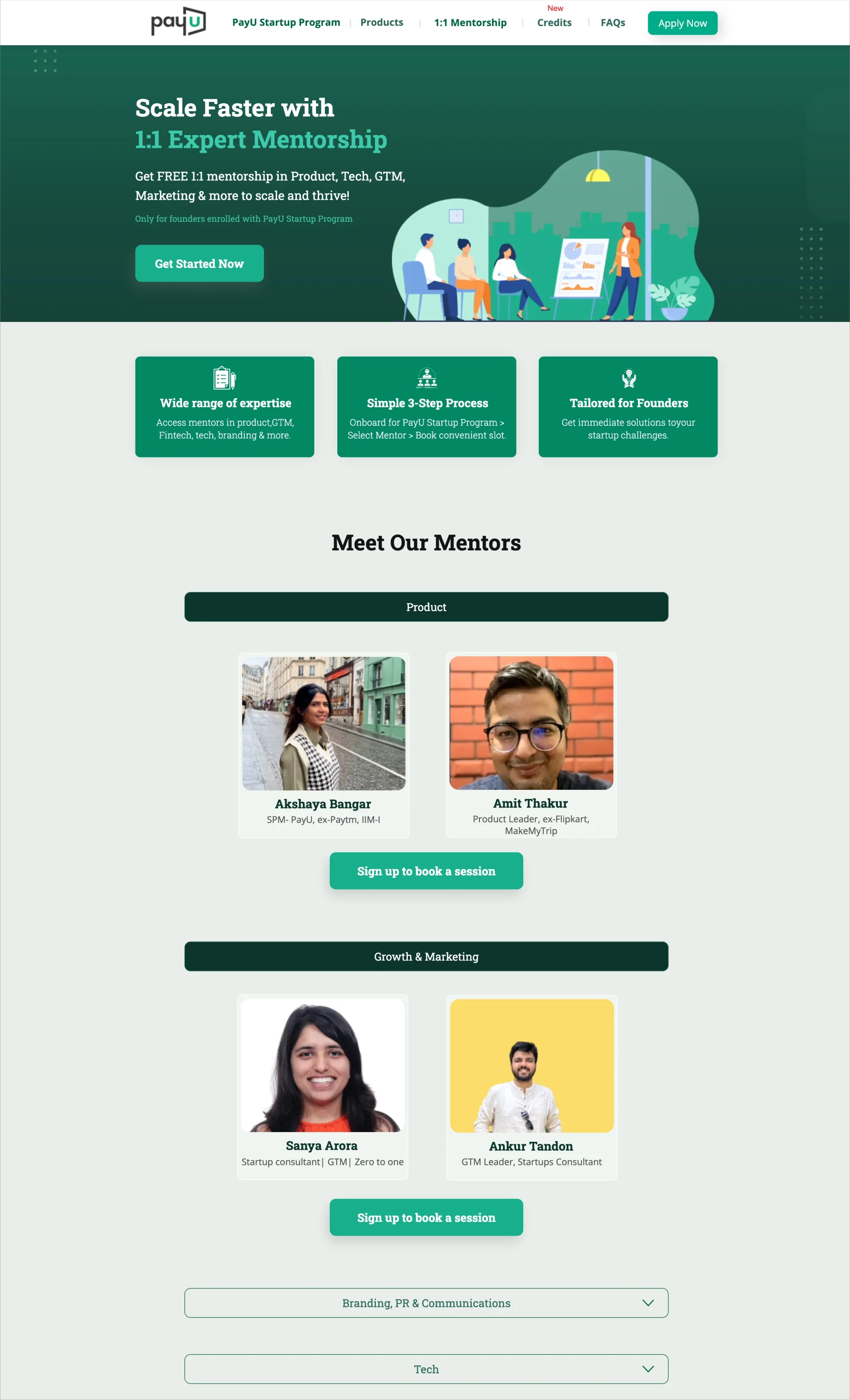 PayU India gestisce un ampio ecosistema di iniziative per i fondatori, dai crediti ai vantaggi per i partner, dalla mentorship al supporto all’onboarding. Per mantenere tutto in movimento, si affida a un flusso costante di landing pages costruiti in Landingi.