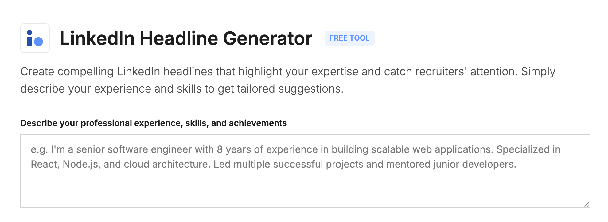 - a LinkedIn profile headline generator,
