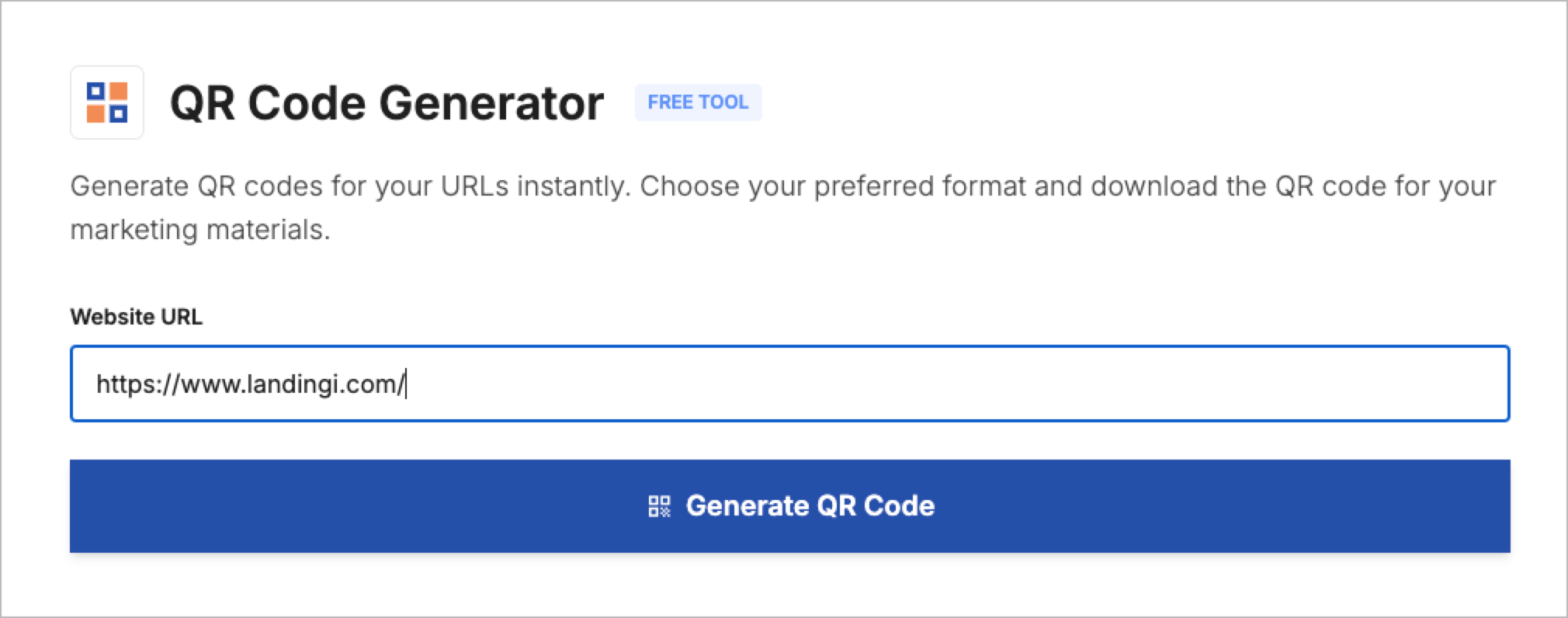With Landingi’s free QR Code Generator, you can create a downloadable QR code in seconds – no sign-up or setup needed.