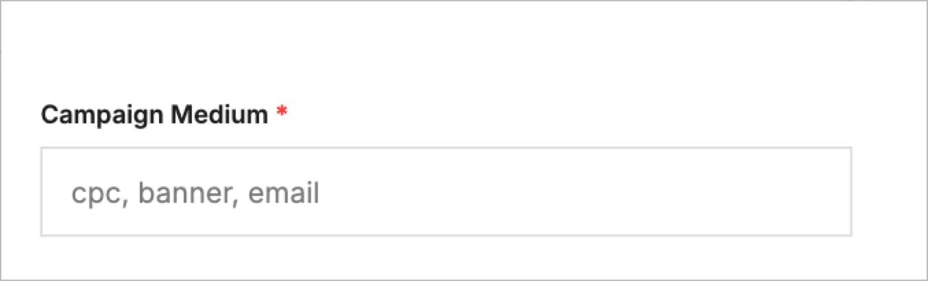 In the Campaign Medium field, enter the type of channel, such as CPC, email, or banner.