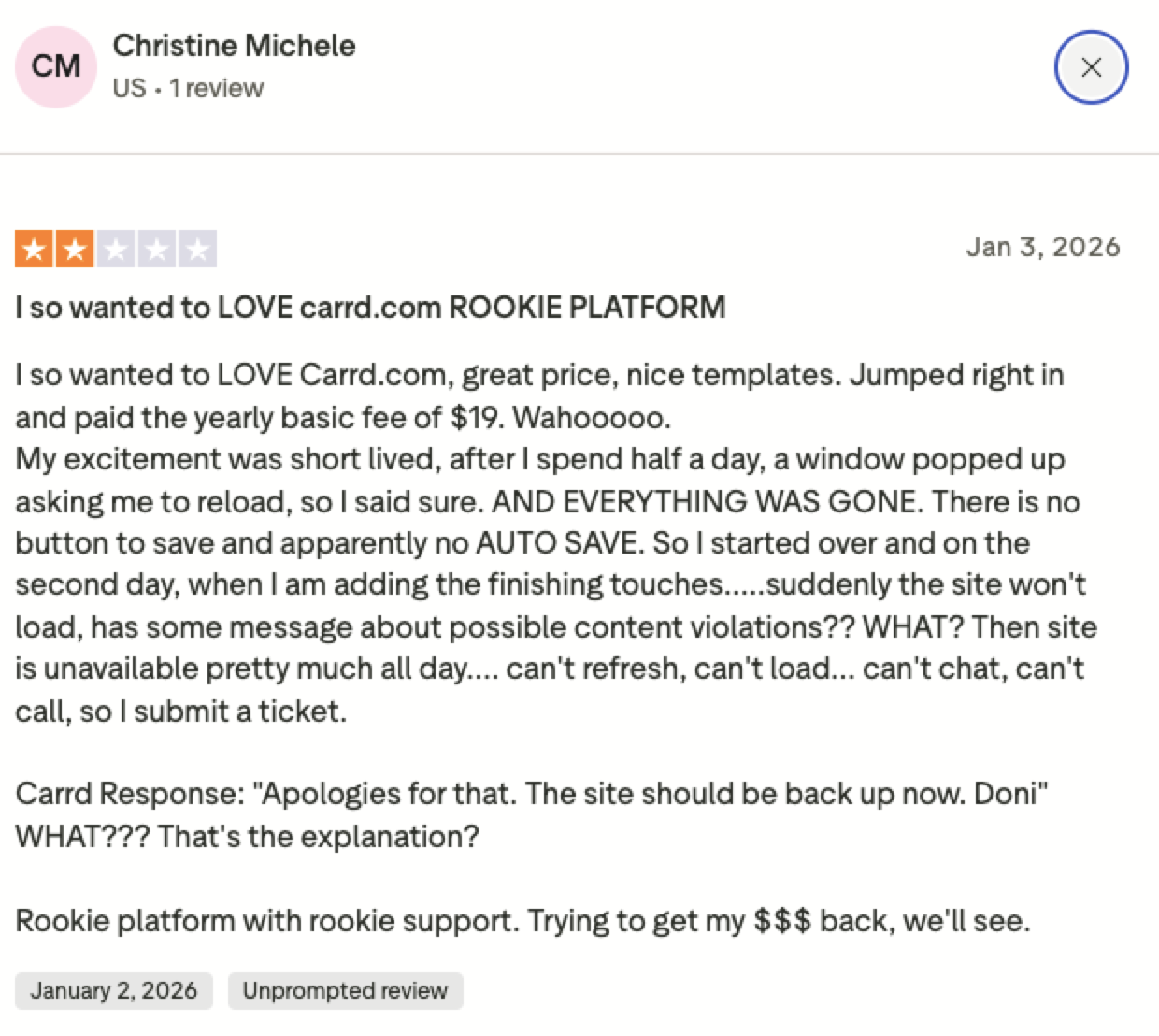 Carrd zbiera pochwały za szybkość działania, prostotę i elastyczność. W recenzjach często pojawia się opinia, że stworzenie estetycznej i funkcjonalnej strony jest wyjątkowo łatwe – nawet bez wiedzy technicznej. Jednocześnie użytkownicy doceniają możliwość pełnej kontroli nad układem, czcionkami, kolorami i sekcjami.